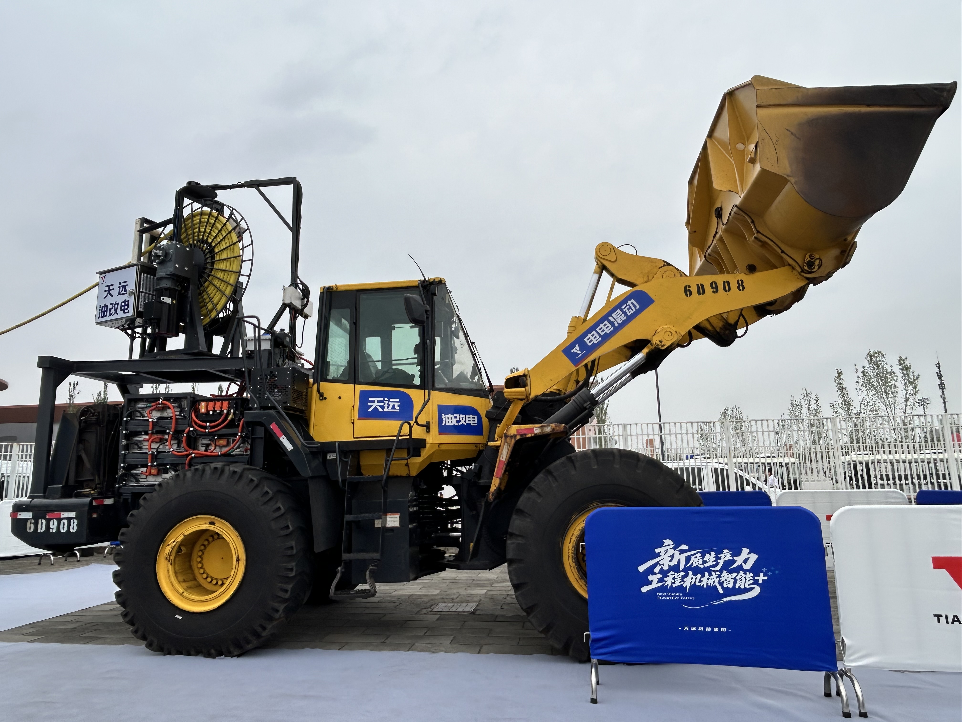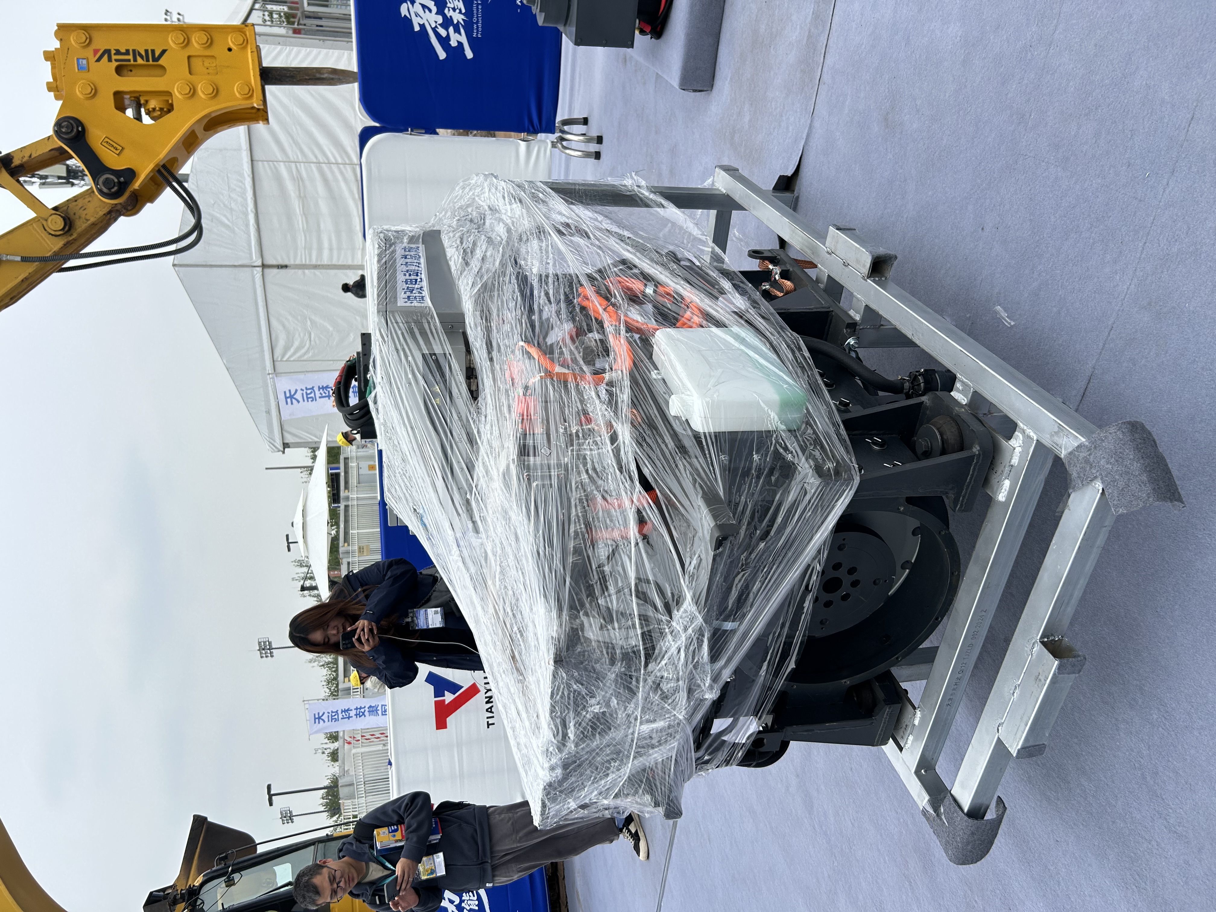 在室外的“油改电”项目展示区,天远科技推出的工程机械电动化改造方案吸引了众多关注行业可持续发展的业内人士。该方案不仅能显著降低设备能耗和碳排放,更为客户提供了安全可靠的环保改造选择。