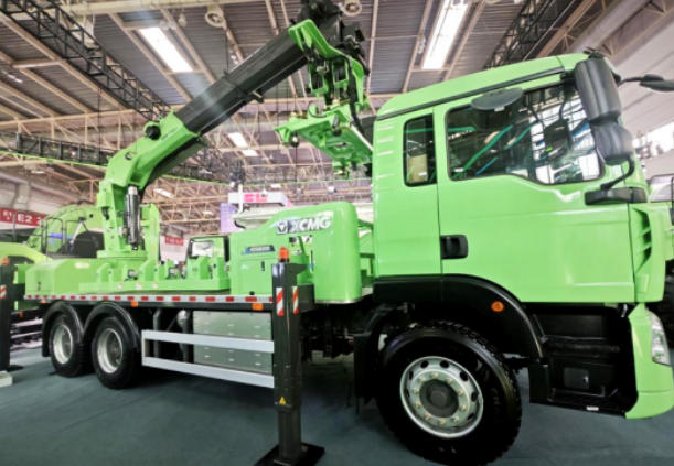 徐工 HDS6000EV 纯电动移动换电车集电池移动运输与 快速换电功能于一体,具备尾部、侧面多工位换电作业能 力,为电动挖装运装备提供成套化解决方案,适用于隧道 内换电补能工作,也可用于户外常规工况、应急救援场景, 解决新能源装备“最后一公里”补能难题,实现长续航无 忧作业。整机采用三级伸缩臂架,抓具具备 360°回转、俯 仰、伸缩功能,回转底托采用 360°回转设计,极大适应狭 小隧道空间换电需求。
