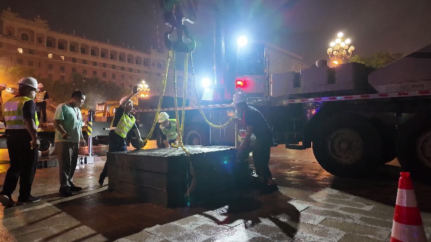 在中联重科助力央视直播阅兵项目工作中,龙卫国(左一)为设备保驾护航