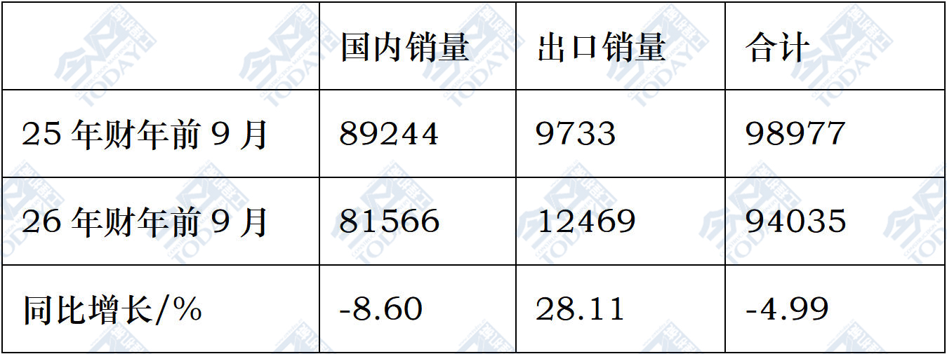 表2 2026年财年前9月与上年同期印度工程机械国内市场与出口销量对比
