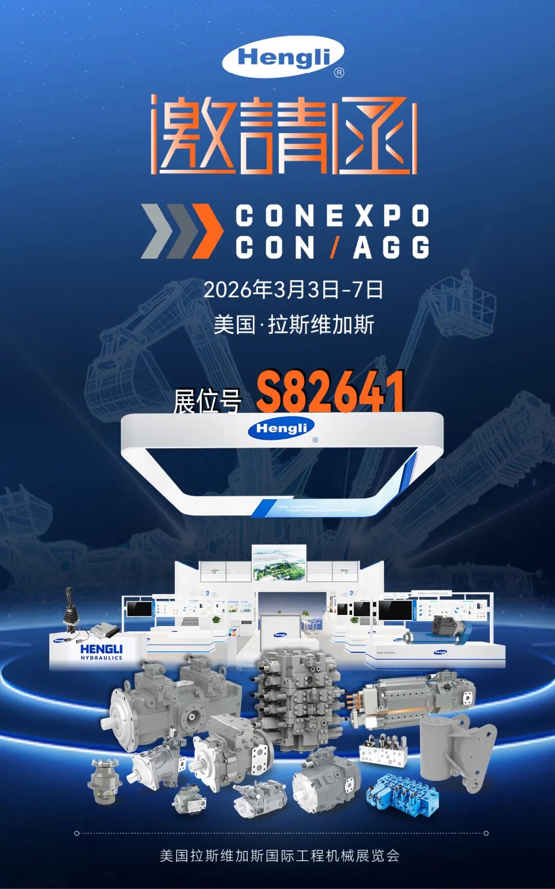 恒立将以“与高效、智能、可持续同行”为参展主题,希望在本次CONEXPO-CON/AGG展会上,为全球客户带来最好的产品,同时也展示恒立作为卓越的液压传动控制与系统集成制造商,以技术创新推动行业迈向智能、可持续未来的蓬勃潜力。