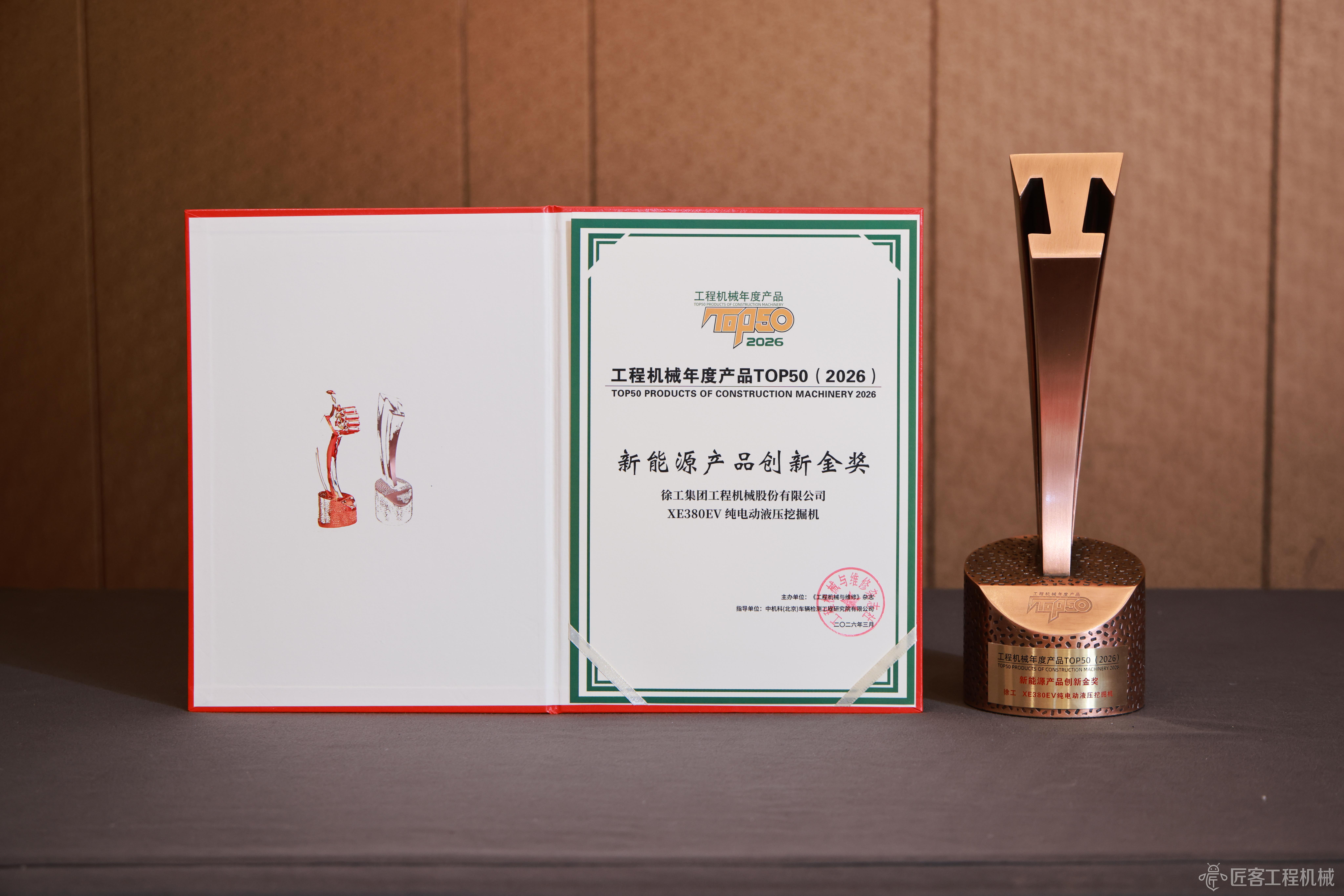 2026CM TOP50丨徐工XE380EV纯电动液压挖掘机荣获2026工程机械年度产品新能源产品创新金奖