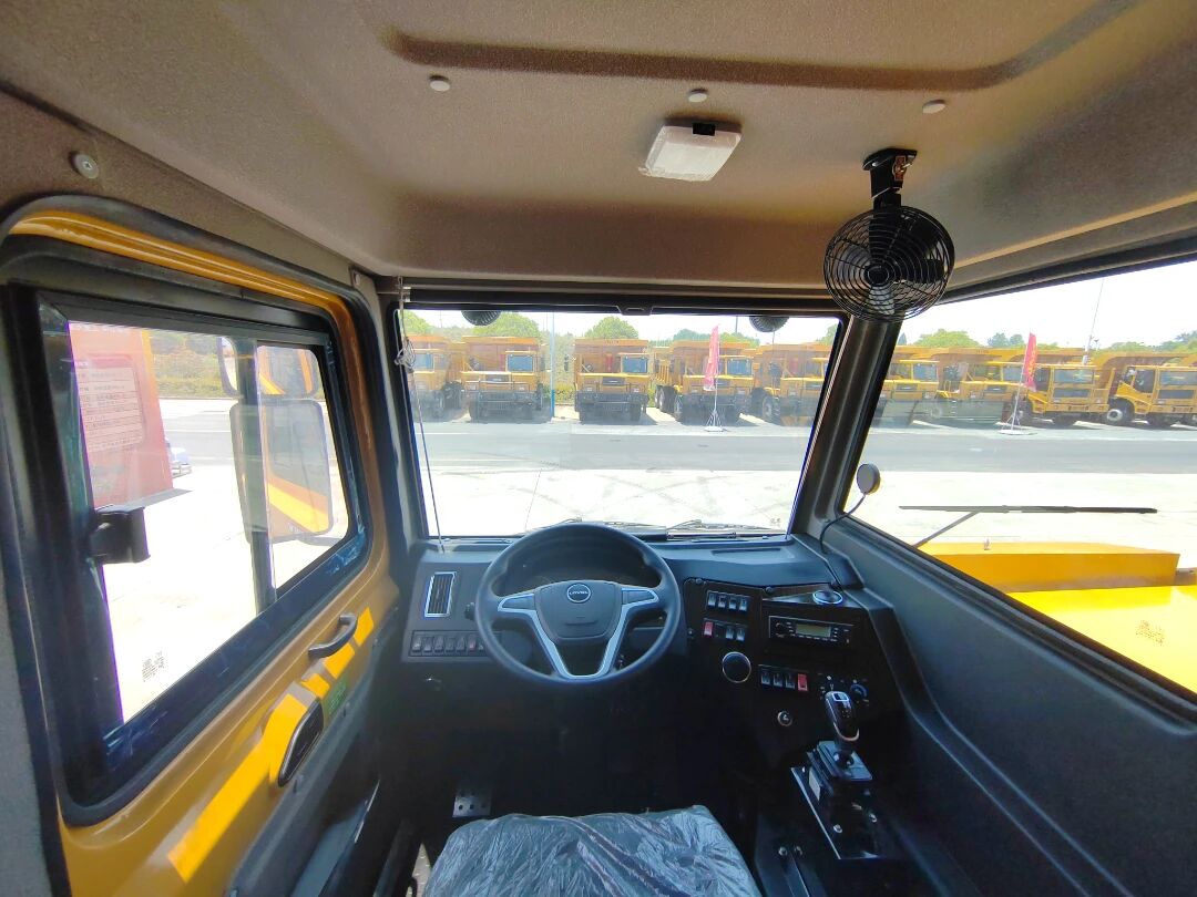 单边左置、半浮式、窄体驾驶室;标配矿山专用座椅,座面加宽,乘坐更舒适;进口伊顿全液压转向器、优先阀,全液压转向轻便精确。
