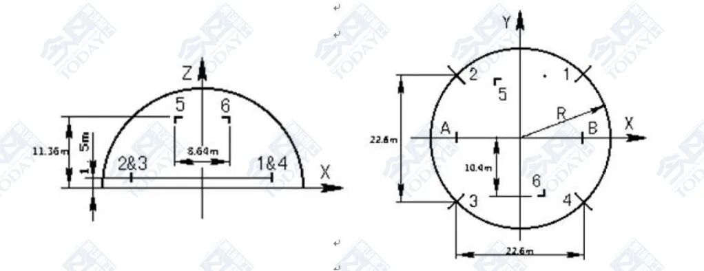 图2 机外发射声功率级噪声测点位置(R=16 m)