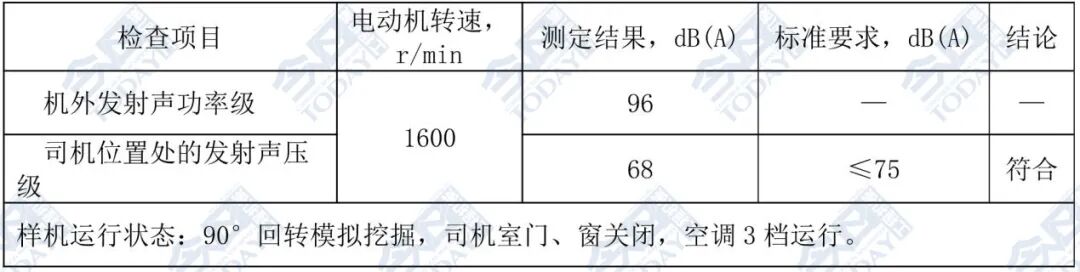 噪声测试结果:在电动机转速为1600r/min的情况下,经过对“机外辐射噪声”和“司机耳旁噪声”的测试,最终噪声测定结果为:机外发射声功率级96分贝,司机位置处发射声压级68分贝。详情见表3。