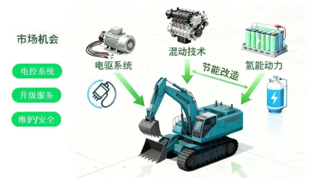 综上所述,当前工程机械后市场正处在“存量”与“增量”并存、“防守”与“进攻”皆需的战略调整期。单一的策略已难以应对复杂局面。成功的路径在于“固本拓新”,攻守兼备。另一方面,必须敏锐果断地“驭变”,主动拥抱新能源、数字化与人工智能的技术趋势。这是企业打破同质化竞争、构建长期竞争优势、实现未来价值增长的发动机。