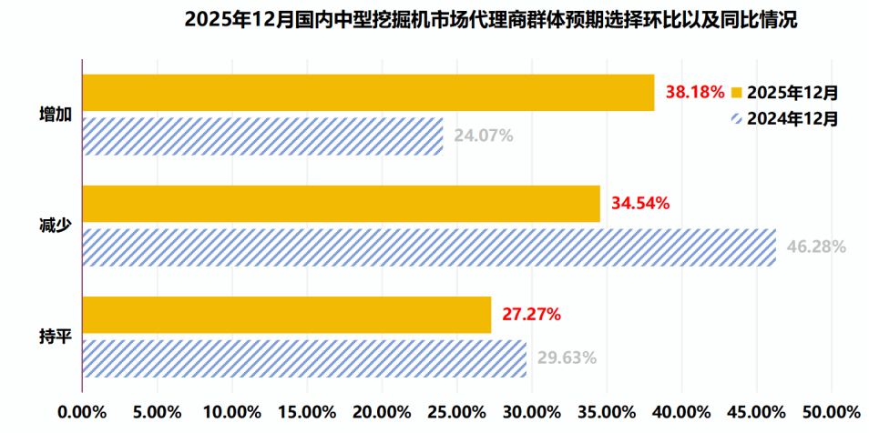 图 2 2025年12月国内挖掘机市场代理商群体同比预期选择
