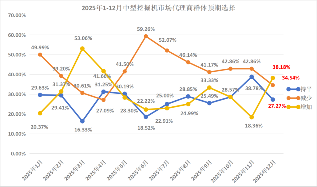 图 7 2025年12月国内中型挖掘机市场代理商群体预期选择同比情况