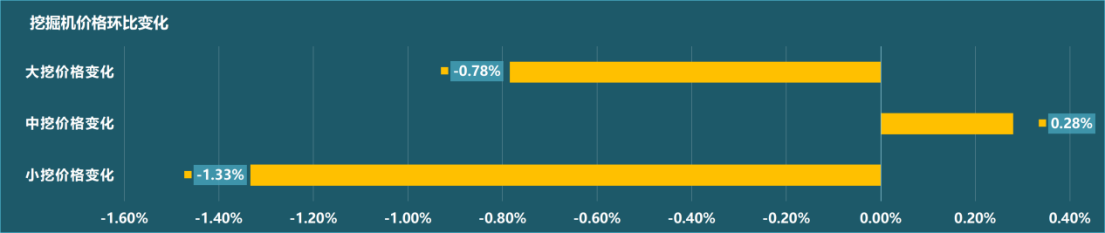 12月上旬,大、小型挖掘机成交价格环比小幅下降,中挖价格微幅回升