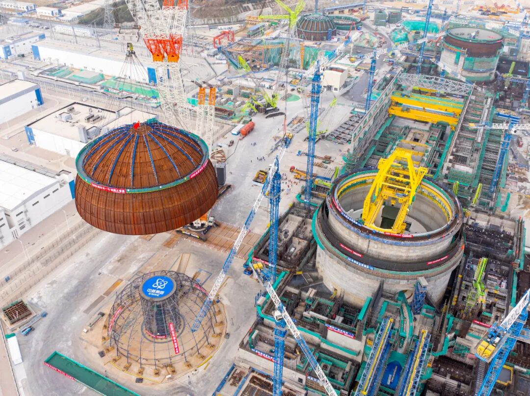 据了解,漳州核电是“华龙一号”批量化建设的始发地,也是全球最大的“华龙一号”核电基地,规划建设6台华龙一号核电机组。内穹顶吊装是华龙一号核电工程建设的重要里程碑,其位于核岛顶部,主要功能是保证反应堆厂房的完整性和密封性。