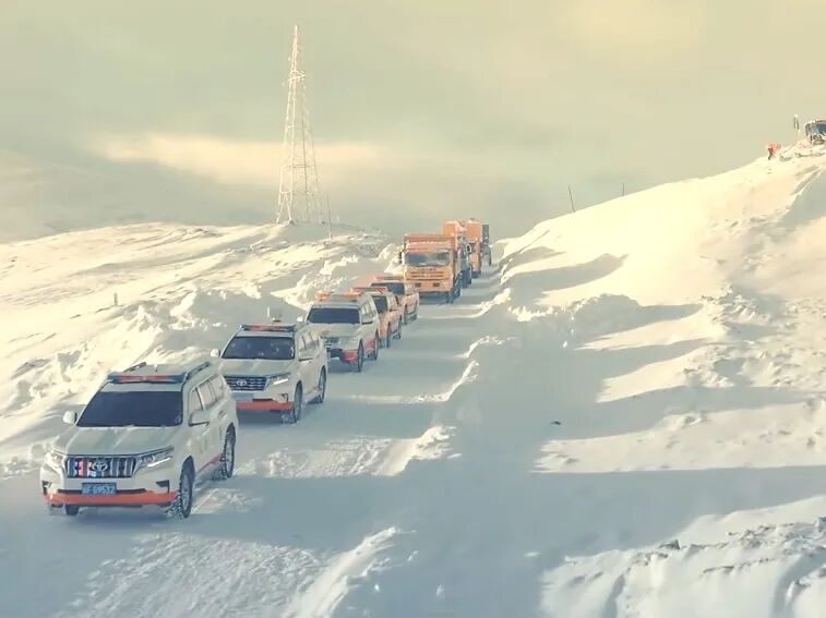 1月28日傍晚,恶劣天气导致S518线近18公里道路被厚重积雪覆盖,能见度极低,严重威胁过往司乘安全。面对海拔高、气温低、任务急的严峻挑战,除雪效率与设备可靠性成为决胜关键。改则养护段组织的应急队伍中,山推装载机凭借其卓越的低温启动性能、强大的铲装能力与极高的出勤率,成为“机械除雪”主力,在零下二十度的严寒中毅然开赴前线。